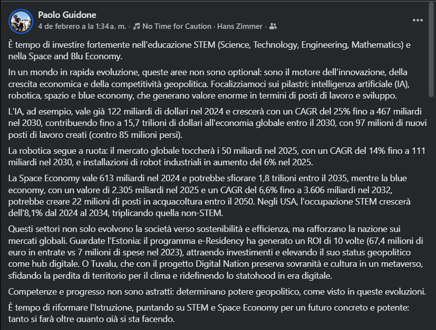 Las habilidades y el progreso no son abstractos: determinan el poder geopolítico, como se observa en estos desarrollos. Es hora de reformar la educación, centrándose en las ciencias, la tecnología, la ingeniería y las matemáticas (STEM) y la economía espacial para un futuro concreto y poderoso: se hará mucho más de lo que ya se está haciendo.