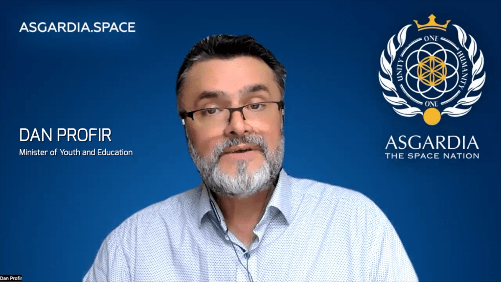 En la agenda se incluye la sesión de Dan Profir, Ministro de Juventud y Educación de Asgardia, quien ha estado promoviendo el aprendizaje autodirigido y la educación alternativa durante bastante tiempo. Su presentación, «¿Qué educación para la generación de exploración espacial?», continuará abordando los temas abordados durante los seminarios web de Asgardia.