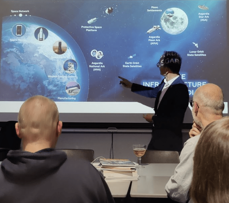 El 19 de Géminis (11 de mayo), el Prof. Wuyts presentó Asgardia y su misión a la comunidad del Observatorio Urania: «Asgardia une a las personas en una sociedad transnacional, igualitaria y progresista para construir un nuevo hogar para la humanidad en el espacio y proteger nuestra cuna: el planeta Tierra».