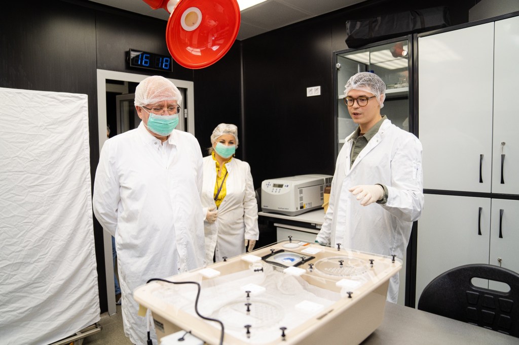El Director del IPBM mostró al Jefe de la Nación Espacial el orgullo del Instituto: los laboratorios y las instalaciones punteras, destacando los desarrollos y áreas relacionados temáticamente con la preparación para la realización de la misión principal de Asgardia: investigaciones en el campo de la gravedad artificial, de la protección contra la radiación espacial y de la embriología espacial.