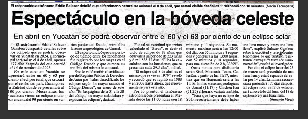En dos diarios locales ha difundido lo que sucederá y lo que será posible ver desde el estado de Yucatán, les invito a seguir estas noticias