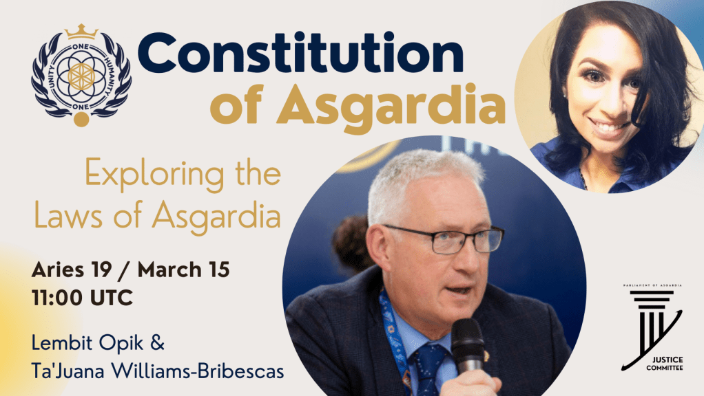 La semana pasada, el Ministerio de Justicia de Asgardia y el correspondiente comité parlamentario lanzaron una serie de seminarios web titulada «Explorando las Leyes de Asgardia». El primer evento en línea se llevó a cabo el 04 de Aries (29 de febrero). Se centró en la Ley Laboral de Asgardia. Se ha publicado un resumen del evento en nuestro sitio web, y la grabación completa del seminario web está disponible en Asgardia TV (Parte 1, Parte 2).