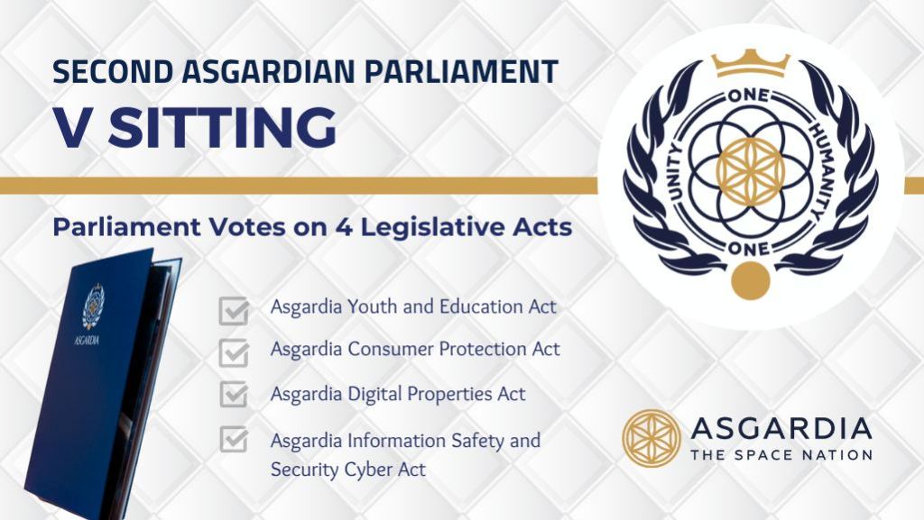La 5ª Sesión del Segundo Parlamento de Asgardia se inauguró el 12 Leo 0008 (28 de junio de 2024).