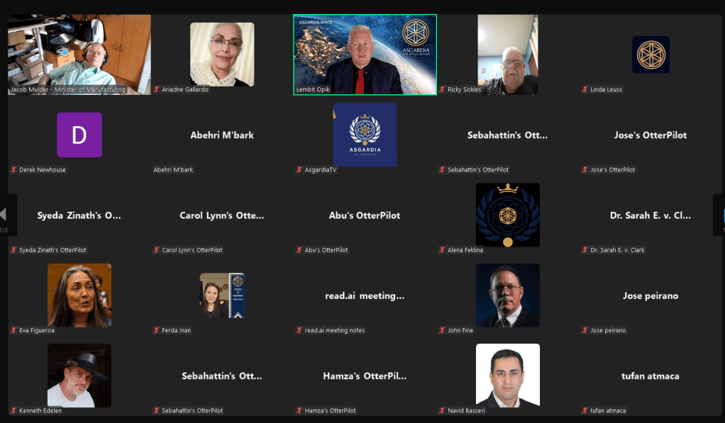 Lo que tenemos aquí es un conjunto de personas. No está editado de ninguna manera. No hay propaganda. Lo que se oye, bueno y malo, tiene que ver con la conducción honesta de una democracia. Y esa es mi intención para esta vez, para estos 20 minutos o media hora que nos encontraremos. Si quieres saber más sobre Asgardia, ve a Asgardia, la nación espacial, solo ponlo en tu motor de búsqueda y nos encontrarás. https://asgardia.space/es/