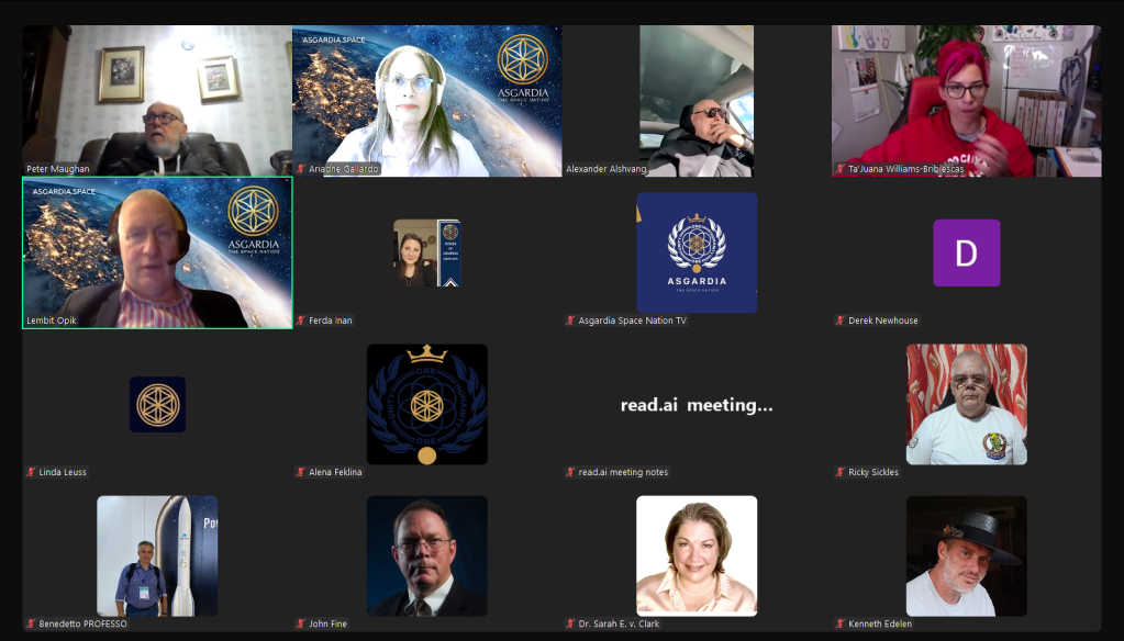 La sesión contó con la participación de Lembit Opik, presidente del Parlamento, quien destacó el exitoso aterrizaje de los símbolos nacionales de Asgardia en la luna, dando crédito a LifeShip y Cheryl Gallagher por sus contribuciones. Habló de la relación positiva con la Sociedad Interplanetaria Británica y del potencial de futuras colaboraciones para mejorar la visibilidad de Asgardia. También se mencionaron los planes para las próximas tres sesiones digitales, con el objetivo de mejorar la eficiencia de la organización.