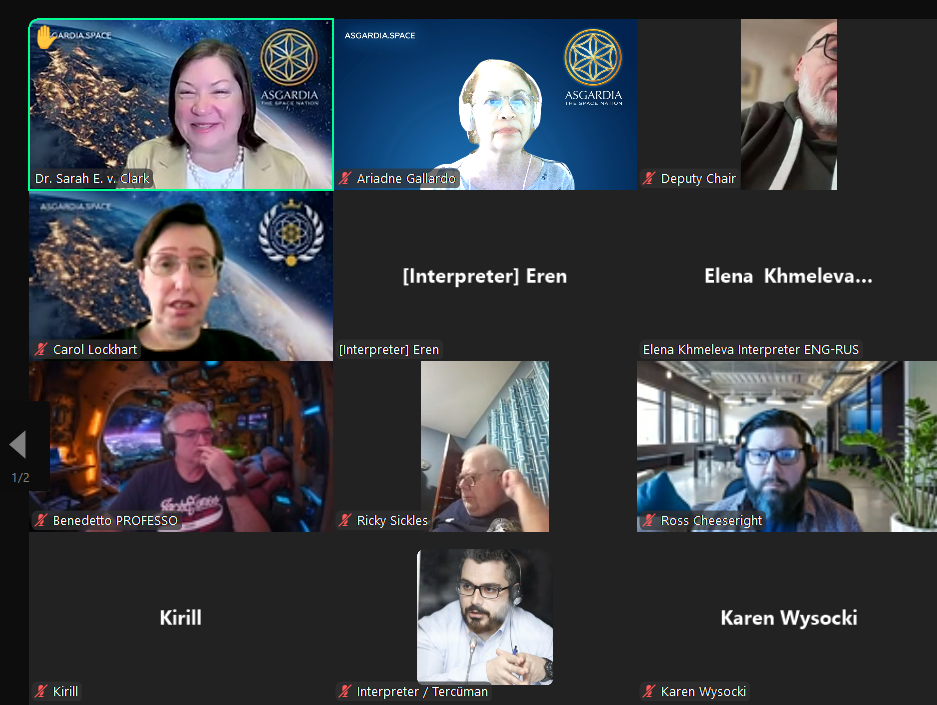 La sesión finalizó con discusiones acerca de la Ley de Comercio Leal sobre Competencia de Asgardia y la Ley fiscal de Asgardia, ambas ideadas para fomentar un ambiente económico competitivo y instaurar un sistema tributario claro. Dra. Sarah E. v. Clark destacó los principios que guían la legislación tributaria, mientras que Lembit Opik reconoció los esfuerzos colaborativos en el desarrollo de estas leyes.