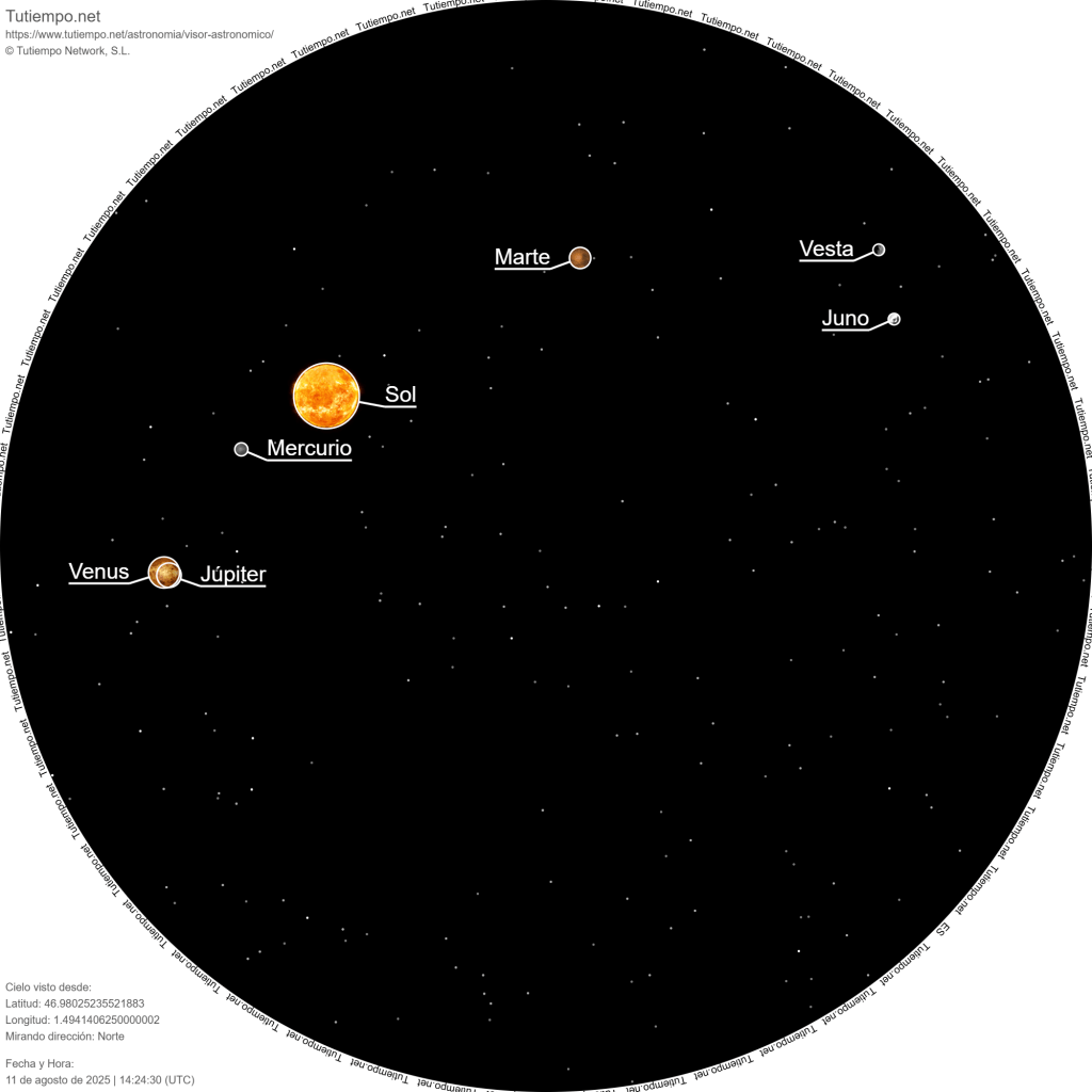 Desde la zona horaria Europa/París, esta es la posición de los planetas: