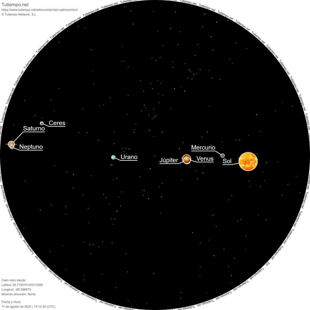 Ver la posición de los planetas que se podrán ver hoy en el cielo desde cualquier lugar de la Tierra, planetas visibles ahora mismo y planetas visibles para cualquier fecha.