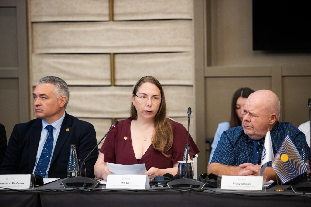 Luca Sorriso Valvo, del Comité de Ciencia, hizo hincapié en la labor legislativa sobre las actividades espaciales y la protección del medioambiente, así como en los planes para futuras misiones científicas e investigaciones que promuevan la exploración responsable más allá de la Tierra.