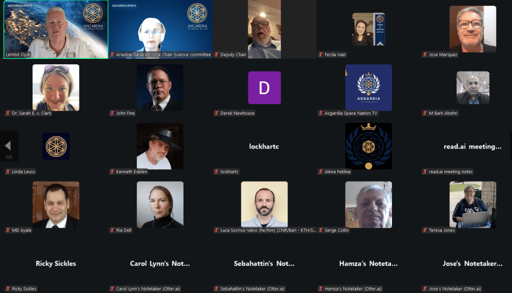 La búsqueda de tierras para Asgardia fue otro punto clave, y Opik mencionó a Mary Birdland en la Antártida como posible emplazamiento. Animó a los asistentes a considerar países que pudieran estar abiertos a negociaciones, haciendo hincapié en la necesidad de una participación activa en las próximas sesiones digitales programadas del 5 al 7 de diciembre. Se reiteró la importancia de la colaboración entre los presidentes de los comités, con un llamamiento a todos los miembros para que contribuyan al avance de los diversos proyectos. Opik también presentó la nueva aplicación Asgardia, animando a todos a descargarla y enviar comentarios para mejorar su funcionamiento.