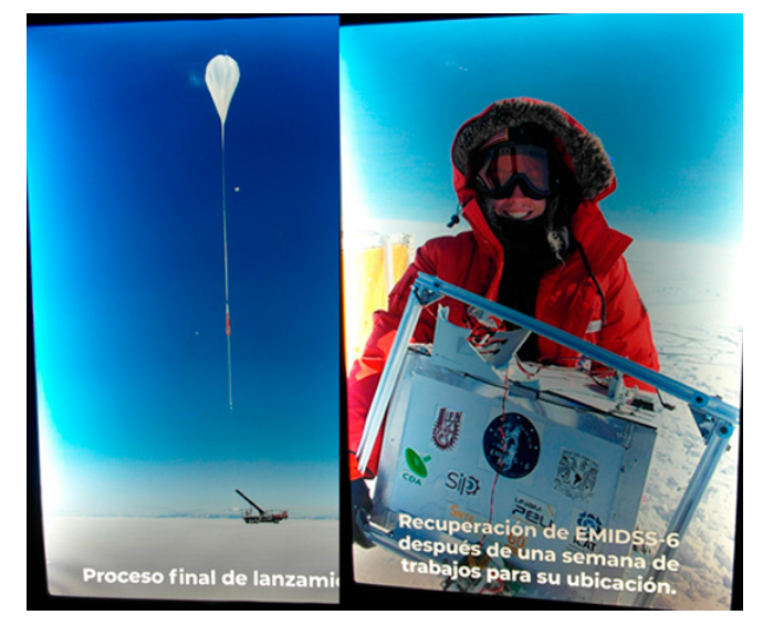 Uno de los hitos más destacados del proyecto fue el vuelo del EMIDSS-6, lanzado desde la Antártida en diciembre de 2023. “Fue la primera misión aeroespacial mexicana lanzada desde ese continente y dio la vuelta al mundo en 11 días”, relató el líder del proyecto e investigador del CDA, Mario Alberto Mendoza Bárcenas.