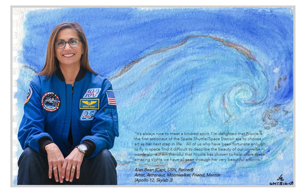 Lo segundo que los astronautas han traído a las personas comunes es que han realizado cosas relativamente ordinarias en el espacio, también en la estación espacial. Así que tienes a Nicole Scott, por ejemplo, quien hizo la primera pintura a la acuarela en la estación espacial.