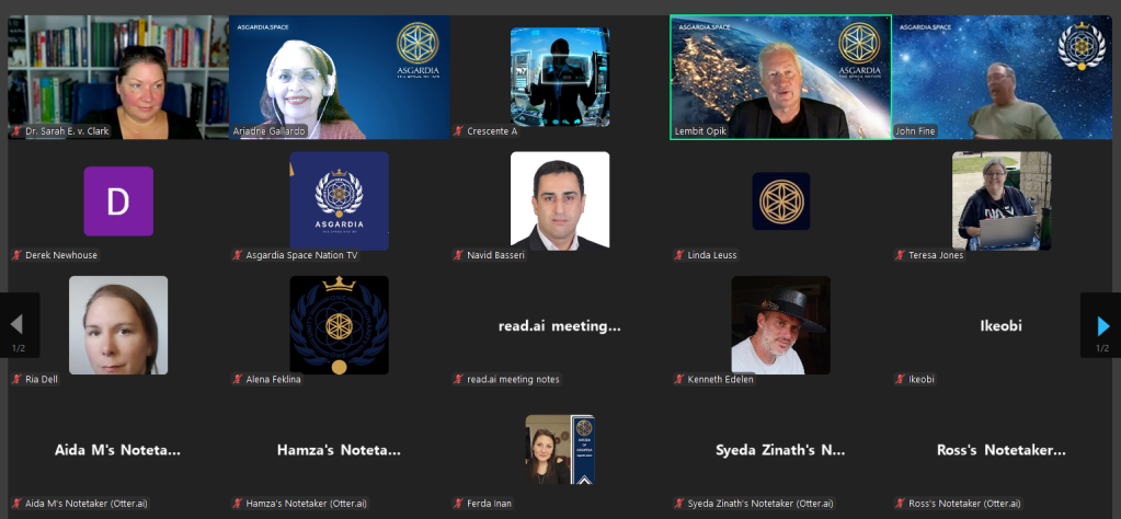 También mencionó la oportunidad para que las personas se conviertan en residentes de Asgardia, reforzando el valor de la participación cívica. La sesión concluyó con Opik confirmando el final de la reunión y sus planes para futuros anuncios.